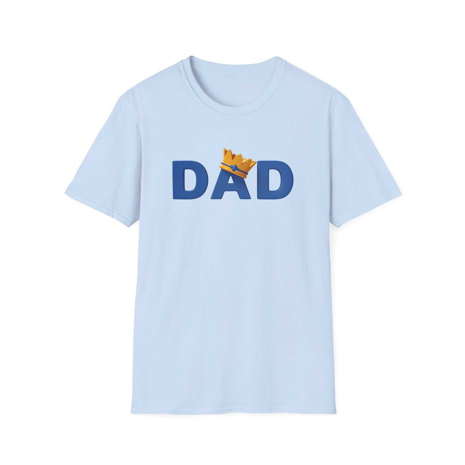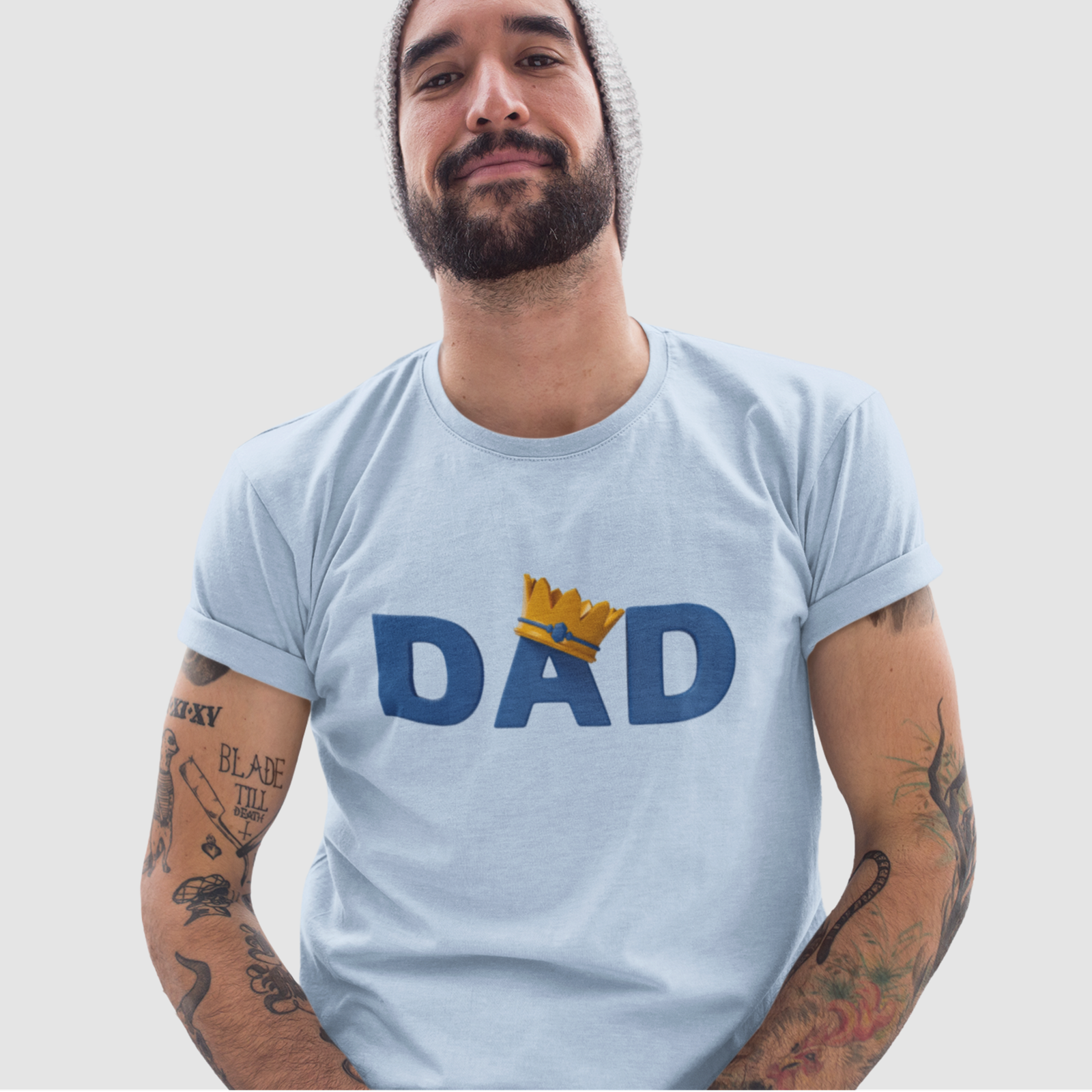 The Crowned Dad T-Shirt features the word “DAD” in bold blue lettering, topped with a regal crown that says it all—Dad’s the king. The simple yet striking design makes a strong statement, perfect for Father’s Day or any occasion that calls for celebrating the man who leads with love and strength.