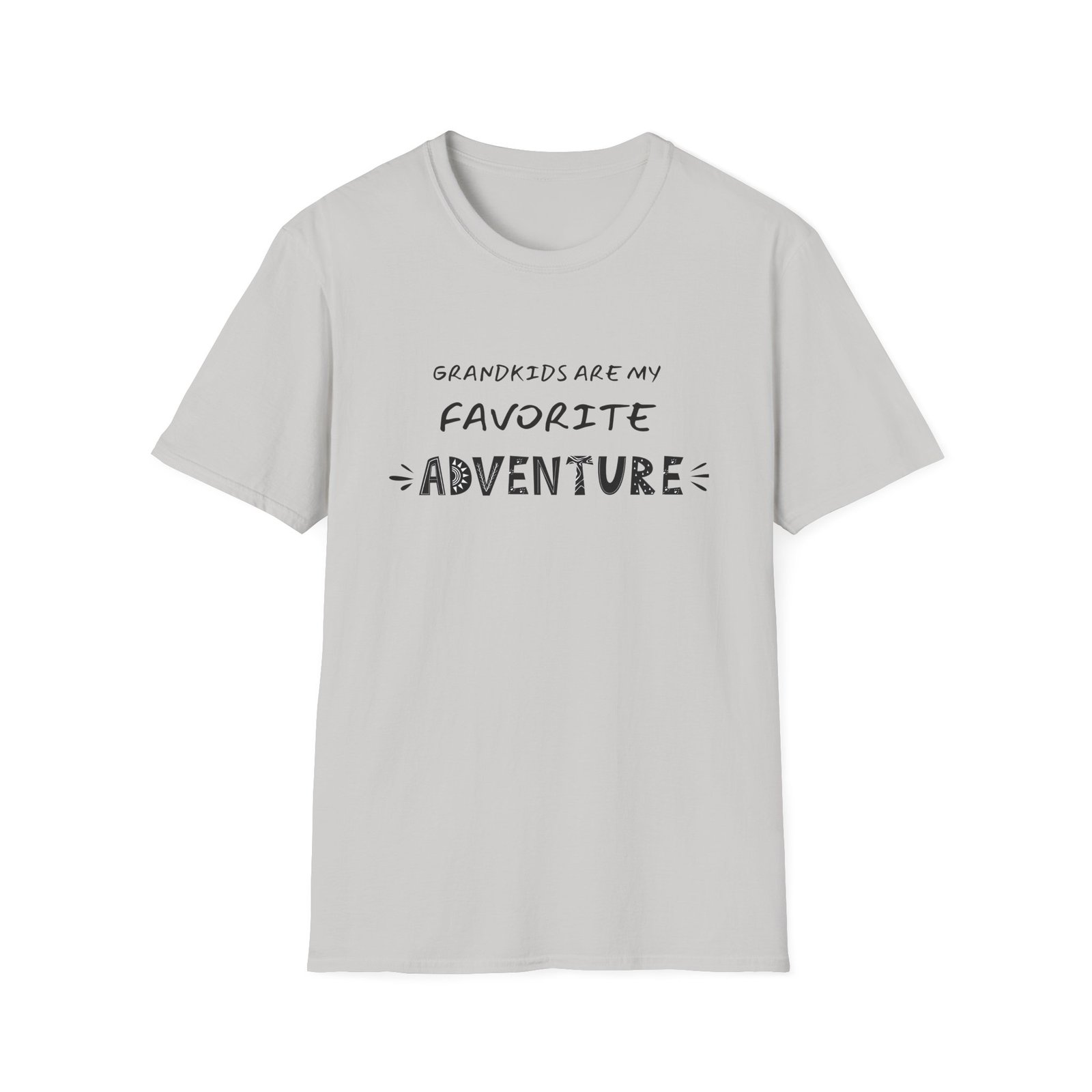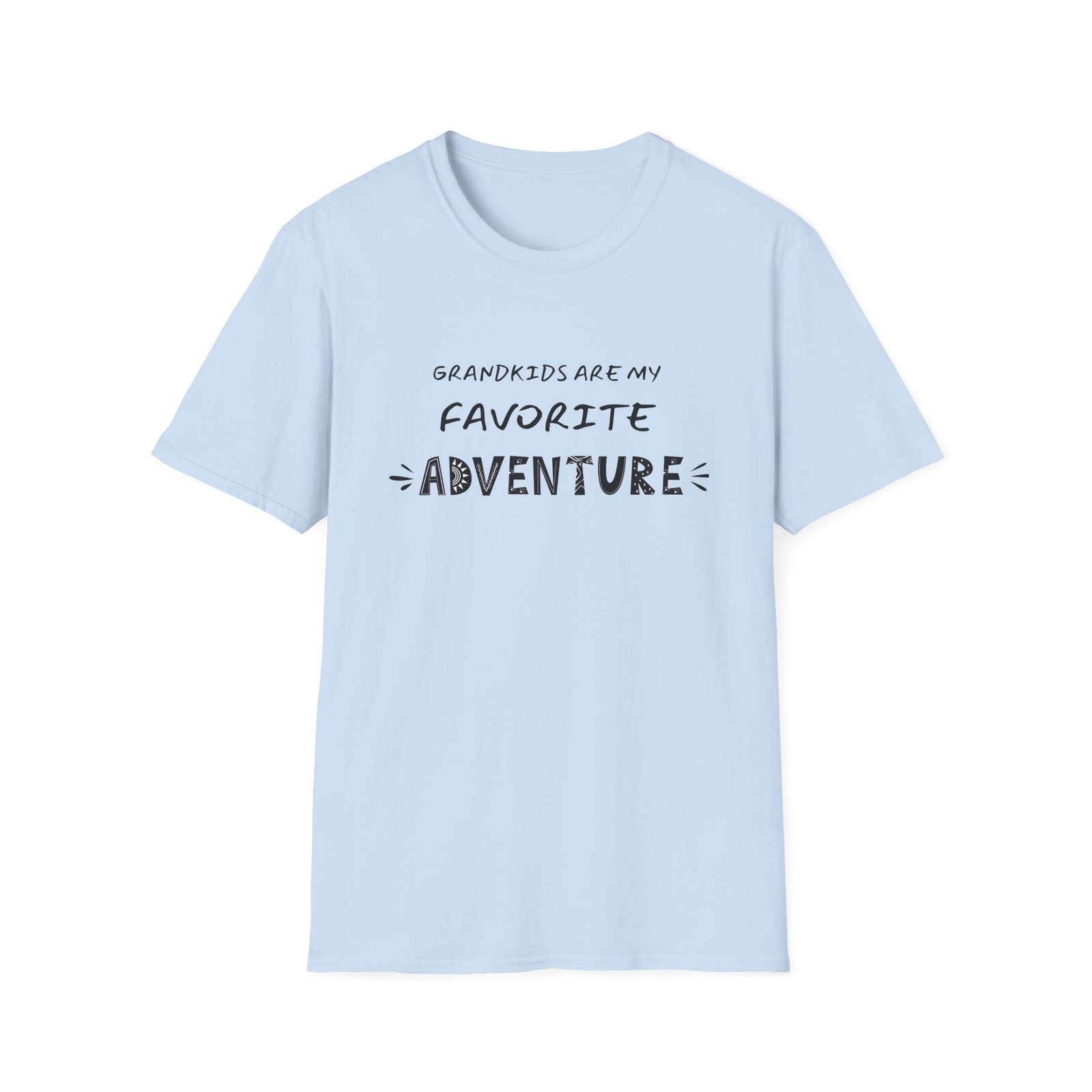 The Favorite Adventure T-Shirt is a playful and heartfelt design made for Grandparent’s Day. The graphic reads “Grandkids Are My Favorite Adventure,” with each letter styled in a creative, nature-inspired way—featuring suns, leaves, waves, and footprints. It’s a design that captures both the fun of adventure and the joy of being a grandparent.