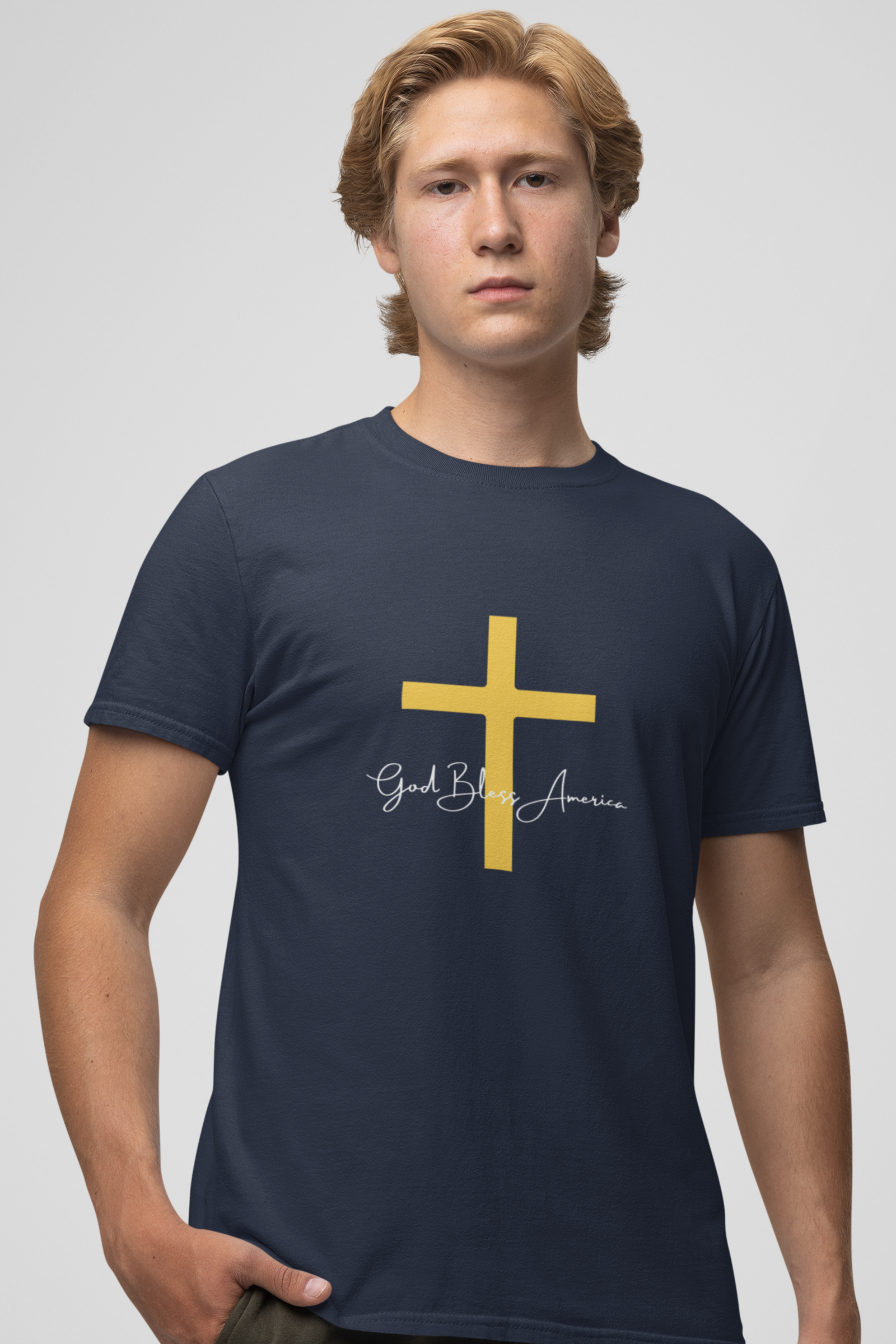 The “God Bless America” tee features a meaningful cross graphic alongside a message of faith and hope. It celebrates the belief that God’s love surrounds America and promises blessings, protection, and goodness for the nation.