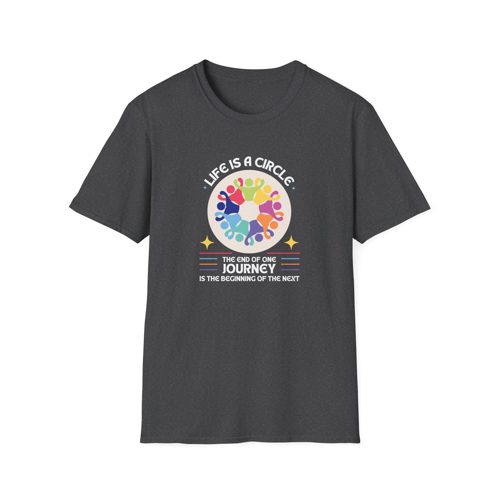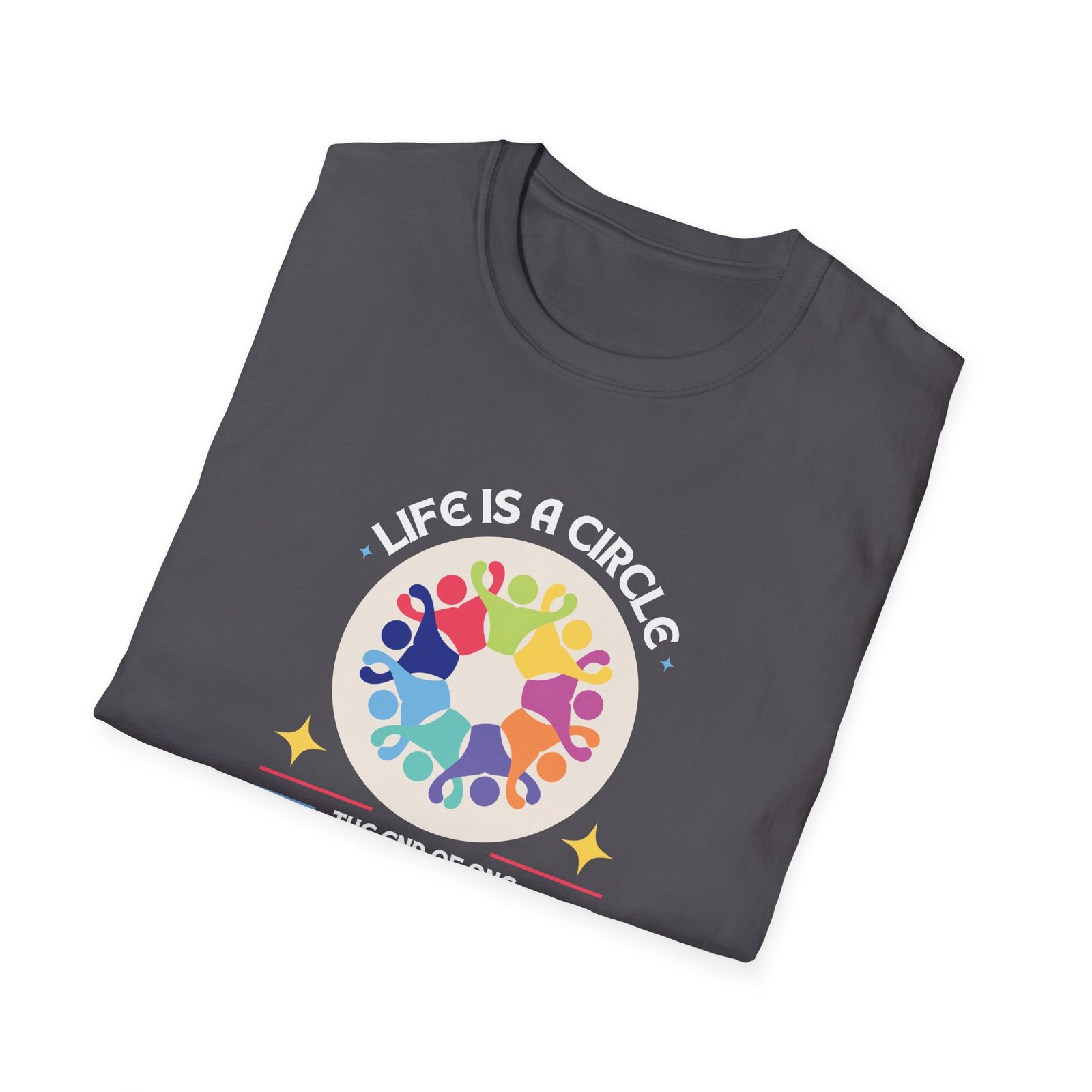 The Life Is A Circle T-shirt is a thought-provoking piece that blends deep meaning with style. The design features the thought-provoking text alongside an abstract graphic of people holding hands in a circle, symbolizing unity, connection, and the cyclical nature of life. Made from soft, breathable cotton, this T-shirt provides a comfortable and relaxed fit for everyday wear.