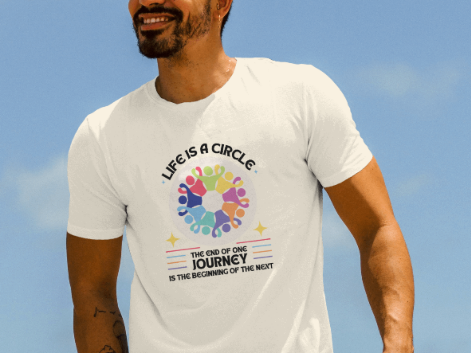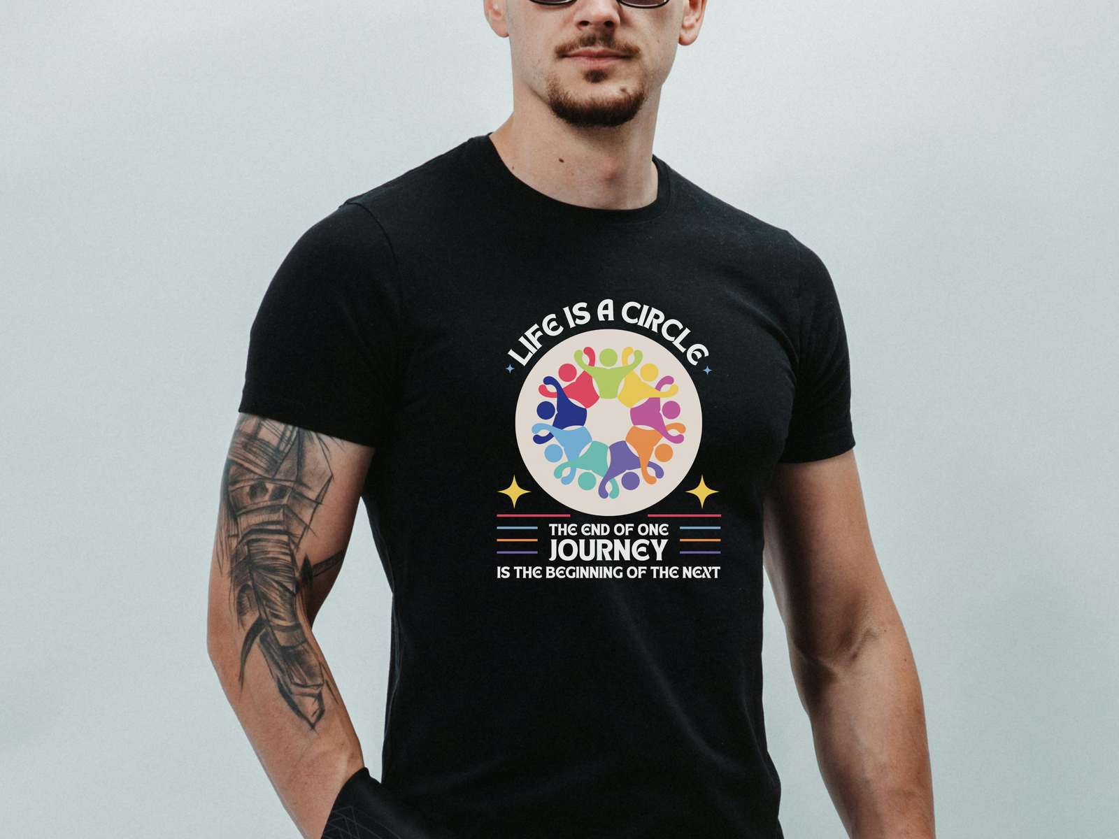 A meaningful addition to your wardrobe, this T-shirt is ideal for those who appreciate deeper messages and striking designs. Order yours today to embrace the circle of life and wear a message of connection wherever you go!