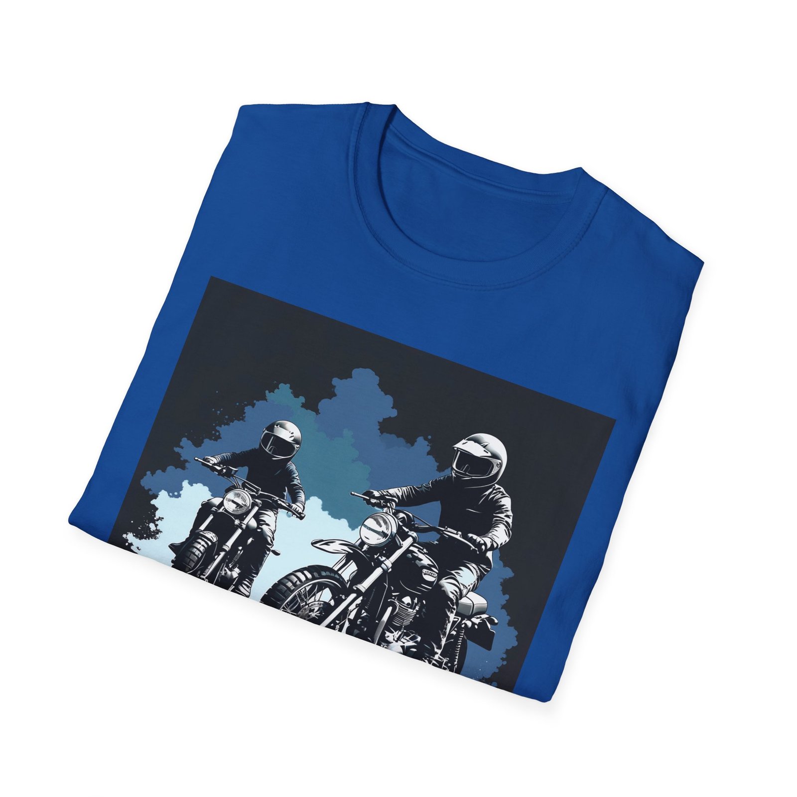 This design captures the thrill of riding and the pride of fatherhood all in one. The colorful smoke adds an energetic, artistic flair that makes the shirt pop, while the separate bikes reflect individuality and togetherness at once. Made from soft, breathable fabric, it’s perfect for weekend rides, casual wear, or gifting to a dad who rides with heart.