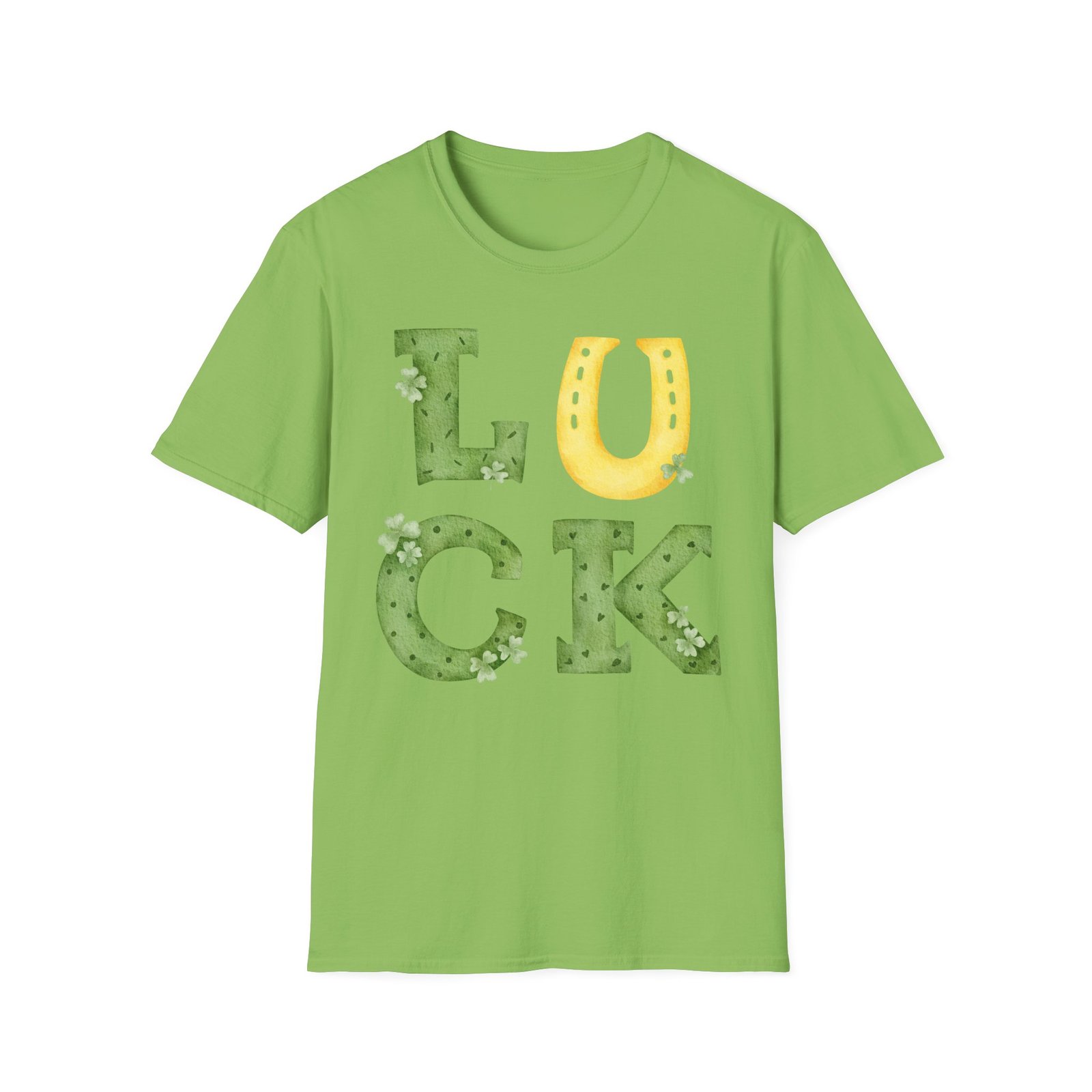Make this “LUCK” T-shirt your go-to choice for good fortune and standout style. Whether you’re looking to add some flair to your festive wear or simply love a fun design, this shirt has you covered. Get yours today and maybe you’ll get lucky!