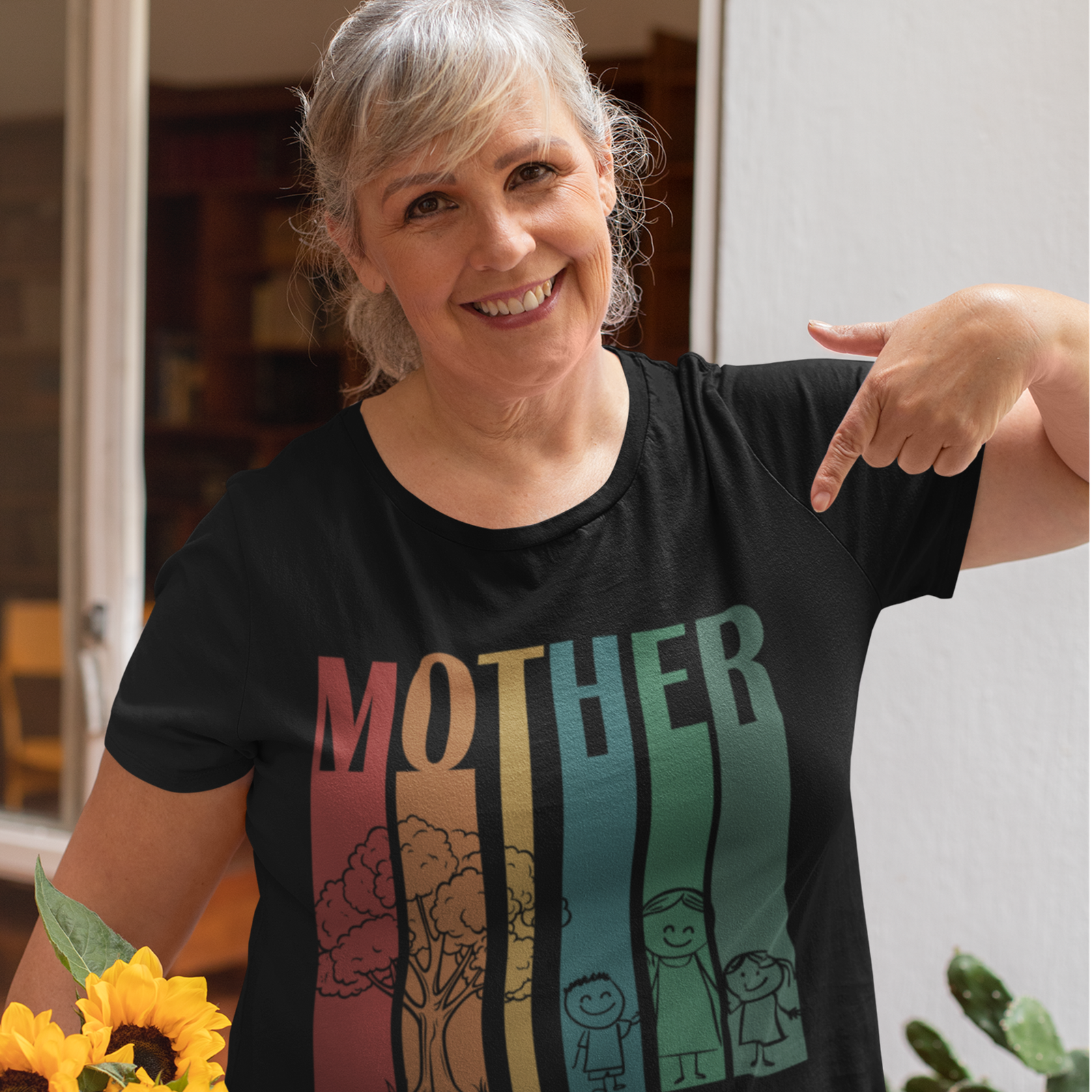 The Mother T-shirt features the word “MOTHER” in bold, strong lettering, paired with a minimalist outline of a mother standing lovingly with her two children. The simple line art adds an emotional, artistic touch that highlights the deep connection between a mom and her kids. Printed on soft, comfortable fabric, this tee is both stylish and meaningful—perfect for everyday wear or a special occasion.