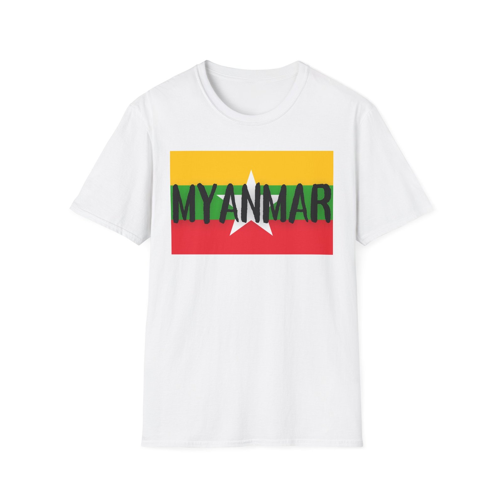 This Myanmar T-shirt features a graphic of the Myanmar flag, showcasing its vibrant colors and symbolic design. The flag is a representation of Myanmar’s rich history and culture, with a bold red, green, and yellow backdrop and a prominent white star. Made from a soft, comfortable cotton blend, this T-shirt offers a stylish way to express your pride for Myanmar while staying comfortable throughout the day.