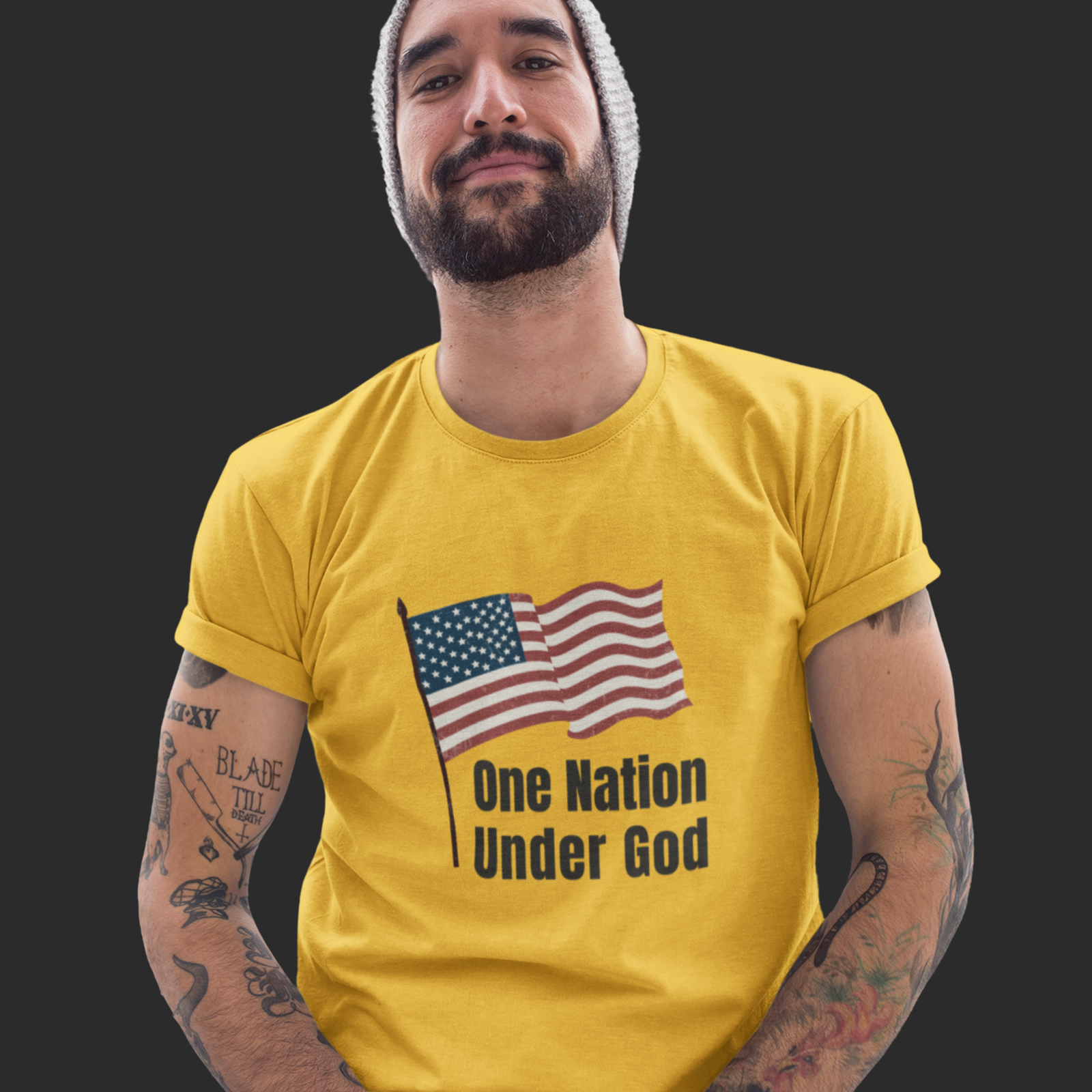 “One Nation Under God” is a strong and respectful reminder of the values that bring people together. This tee lets you wear your faith and your love for country with purpose and pride.