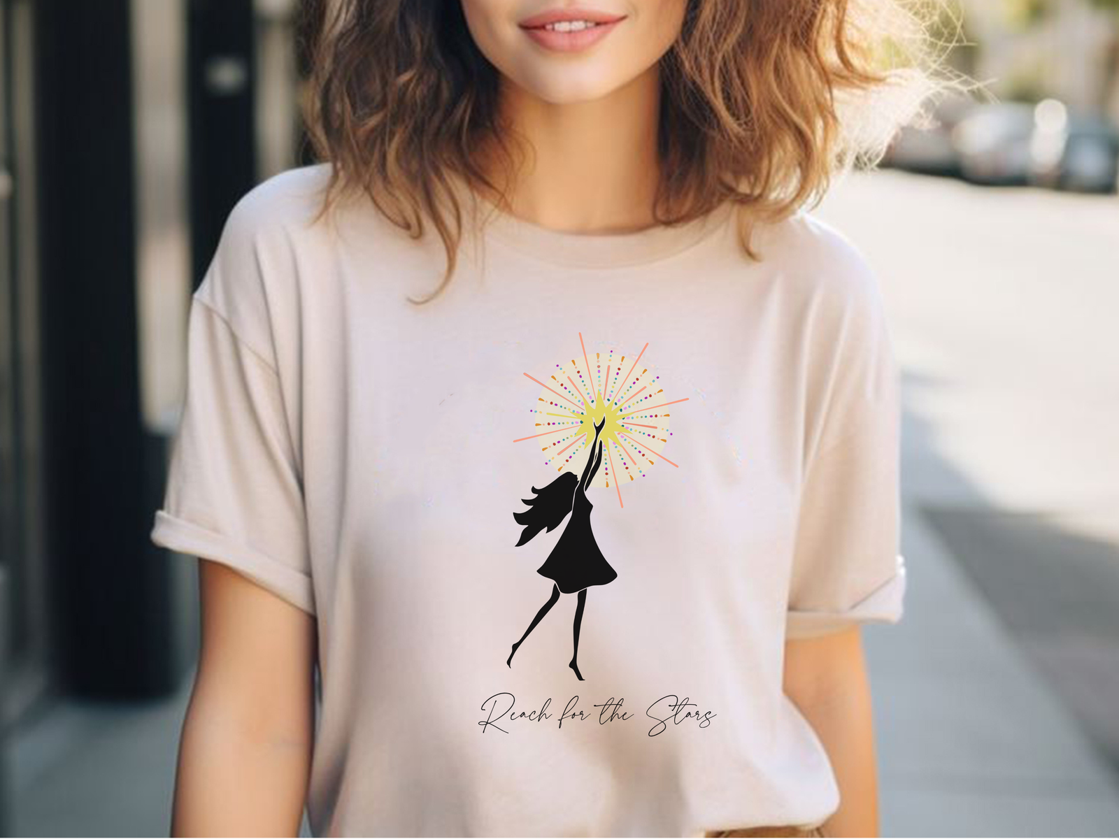 The Reach for the Stars T-shirt design represents ambition, dreams, and the pursuit of greatness. It’s designed to inspire while providing a comfortable fit for all. Crafted from a soft, breathable cotton blend, it offers both comfort and style.